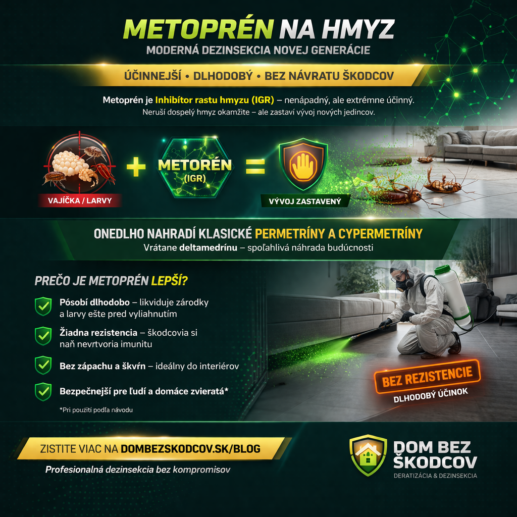 Zaoberáme sa profesionálnou deratizáciou, dezinsekciou a dezinfekciou so zameraním na rýchle a dlhodobo účinné odstránenie škodcov vo Vašom domove aj okolí. Pomáhame zbaviť sa všetkých bežných aj odolných druhov, ako sú šváby, rusy, ploštice, blchy, mravce, muchy, mole, osy, myši či potkany. Používame moderné prípravky novej generácie a overené technologické postupy využívané aj v krajinách s vysokým výskytom škodcov, vďaka čomu dosahujeme vysokú účinnosť, rýchly nástup účinku a zároveň bezpečnosť pre ľudí aj bežné domáce prostredie. Každý zásah prispôsobujeme konkrétnej situácii, aby bol výsledok čo najefektívnejší a dlhodobý – cieľom je čistý, bezpečný priestor bez škodcov.
